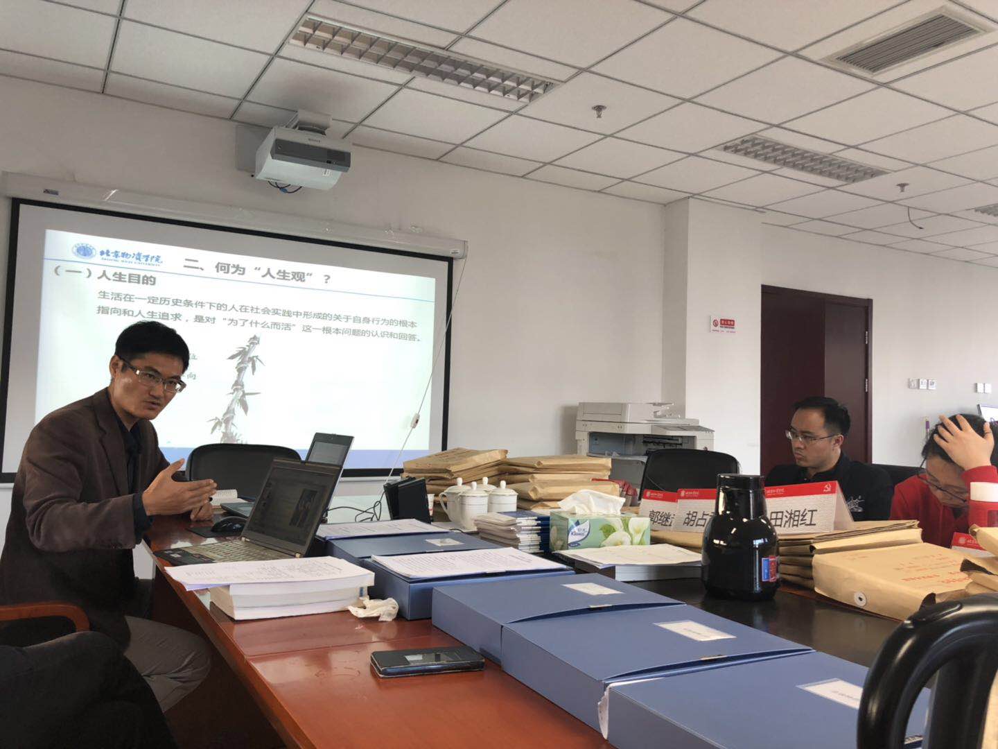 接受本科教学评估还有短短的五天时间,教学质量是本科院校的生命线,也是此次评估环节中重要的一环。学院领导高度重视,召集老师们集体来学校进行说课。四个教研室的老师们,对评估期间可能被听到的每一节课进行了说课,每一位老师都力求把内容讲好、讲精、讲透,精心设计教学环节。在经过几轮反复打磨,多次修改后,将各自的教学PPT、教学设计,向在场的每一位老师展示出来。此次说课活动,老师们教学方式多样,包括:探究式教学、讨论法、案例分析法等等,通过这些方式,以达到学生充分参与教学的效果。