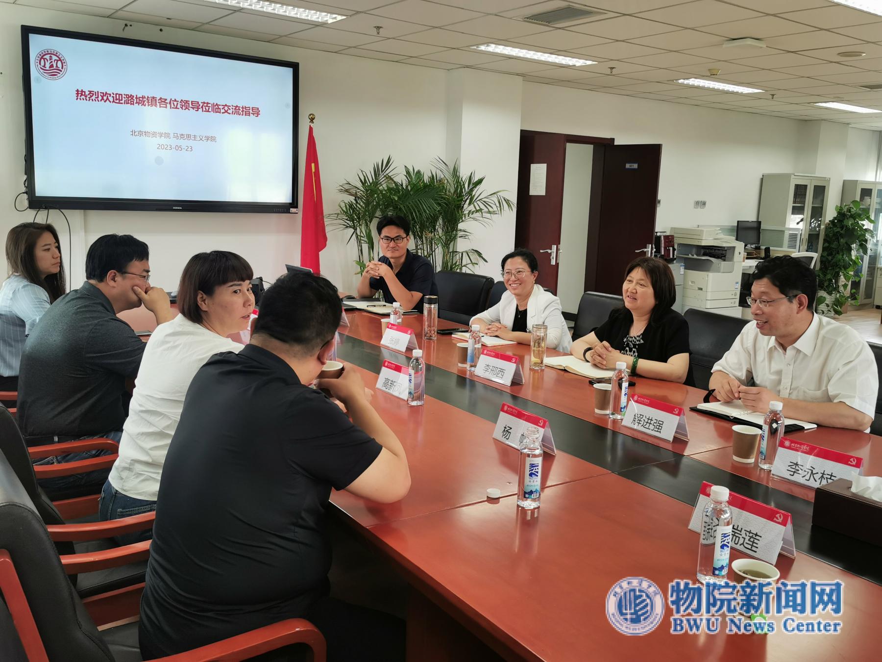 直属党支部书记张建宝全面介绍了马院的师资队伍、学科建设、大思政课体系与实践育人模式、党建引领的理论宣讲与社会服务,就共建大思政课实践教学基地、共襄基层社会治理等提出校地合作的具体构想。高新凤副书记一行对此高度认同。双方围绕深度协作、共促高质量发展进行了细致的研讨交流,明确了具体的落实事项。双方一致表示,将立足北京城市副中心搭建校地长效合作机制,在党建创新、基层治理、人才培养等方面优势互补合作共赢,打造校地合作典范。