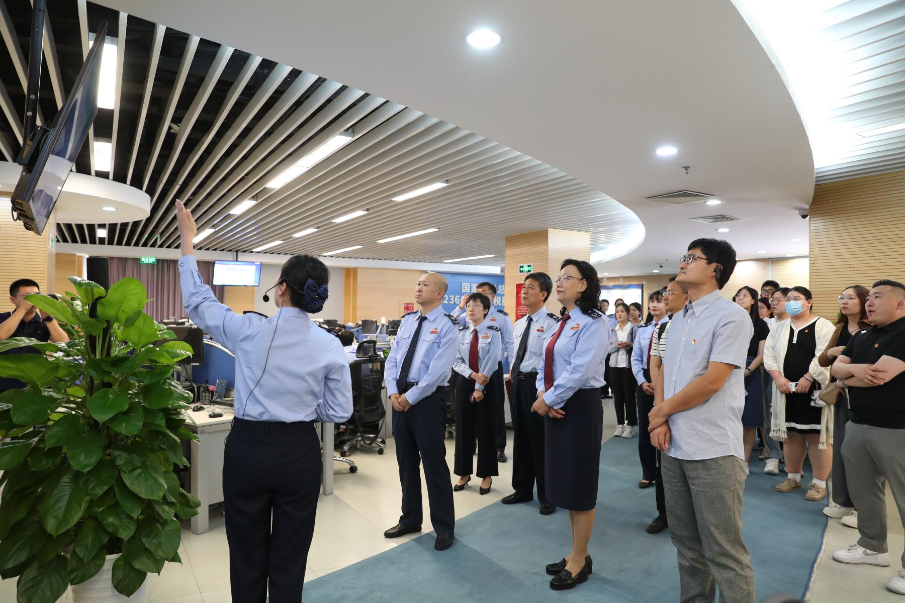 师生在张瑞菊局长的陪同下,全方位参观了国家税务总局12366北京纳税服务中心。通过讲解员细致认真的介绍以及对现场工作的直观感受,大家对税务服务工作的专业度深受震撼。