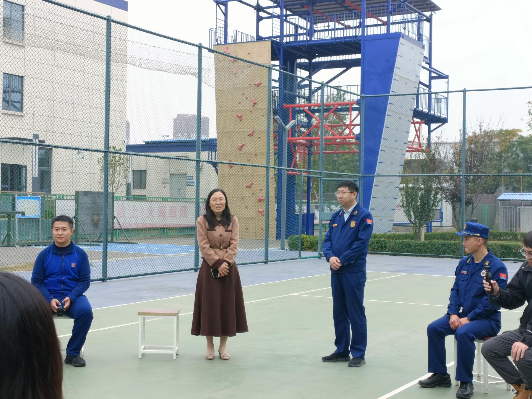 体验环节后,通州区消防救援支队指导员及曾获首都劳动奖章获得的优秀消防员标兵与学生们进行了亲切交流,介绍了消防事业的精神传承、优良作风,分享了实际工作中令人动容的消防故事,让学生们深刻感受到“以人民为中心”的责任与担当。