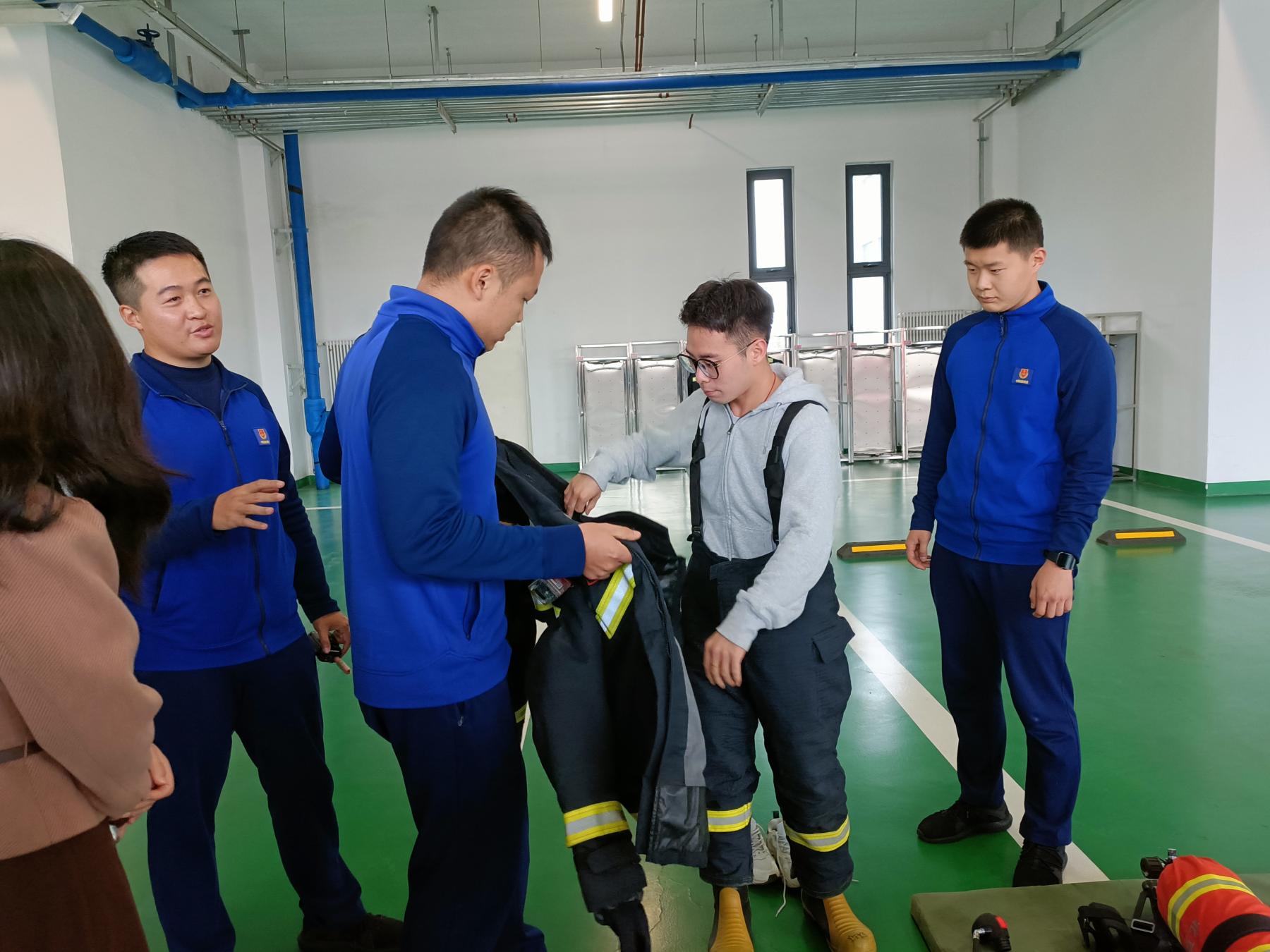 学生们也深入学习了消防业务理论知识,体验穿脱消防服以及灭火器的实际使用。